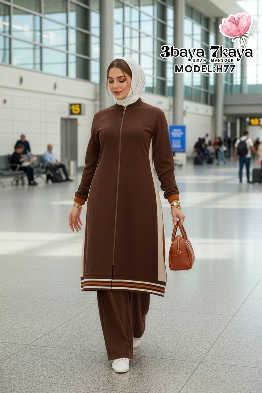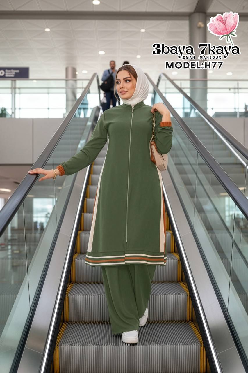 Stay effortlessly stylish and comfortable in this two-piece modest set from 3baya 7kaya.